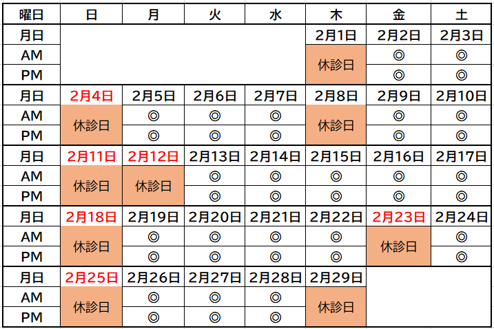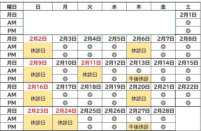 | 2月休診日 | 03日(木) 午後休診 17日(木) 午後休診 |