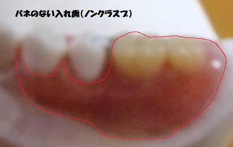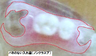 ノンクラスプの入れ歯の場合、歯にバネがかからず入れ歯を歯の根元の歯ぐきで押さえます。